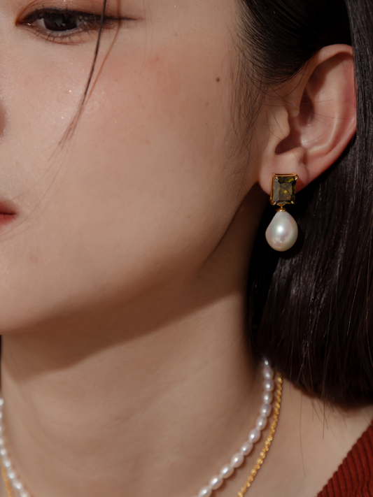 18K Gold Vermeil, Freshwater PearlCHRISTAL MODULAR EARRINGS (OLIVE)