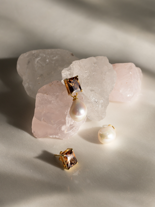 18K Gold Vermeil, Freshwater PearlCHRISTAL MODULAR EARRINGS (COFFEE)